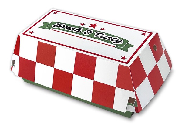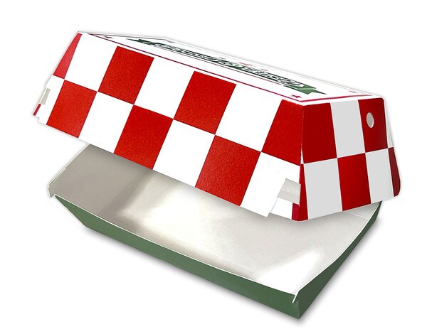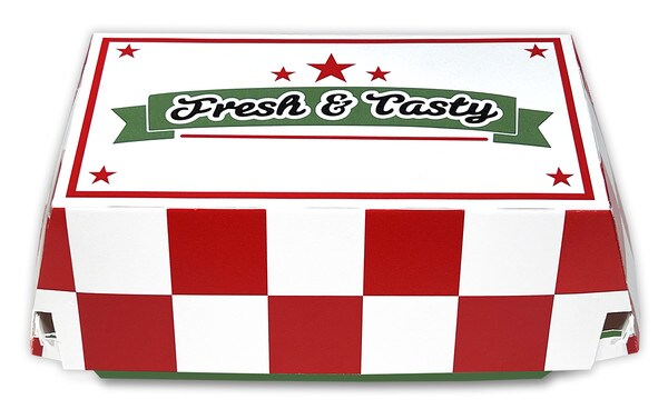 These medium size stackable clamshell boxes are perfect for grab and go meals. Engaging, colorful designs give your meal program that branded look that kids recognize. These are made with a thick barrier board to ensure that no grease or liquids permeate through the structure. Since they are clamshells, there is no assembly required - just load them up and click the top piece over to lock in the contents.